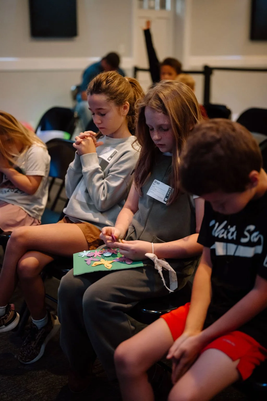 Our team will help you check in your child and print a name tag and matching pickup label.